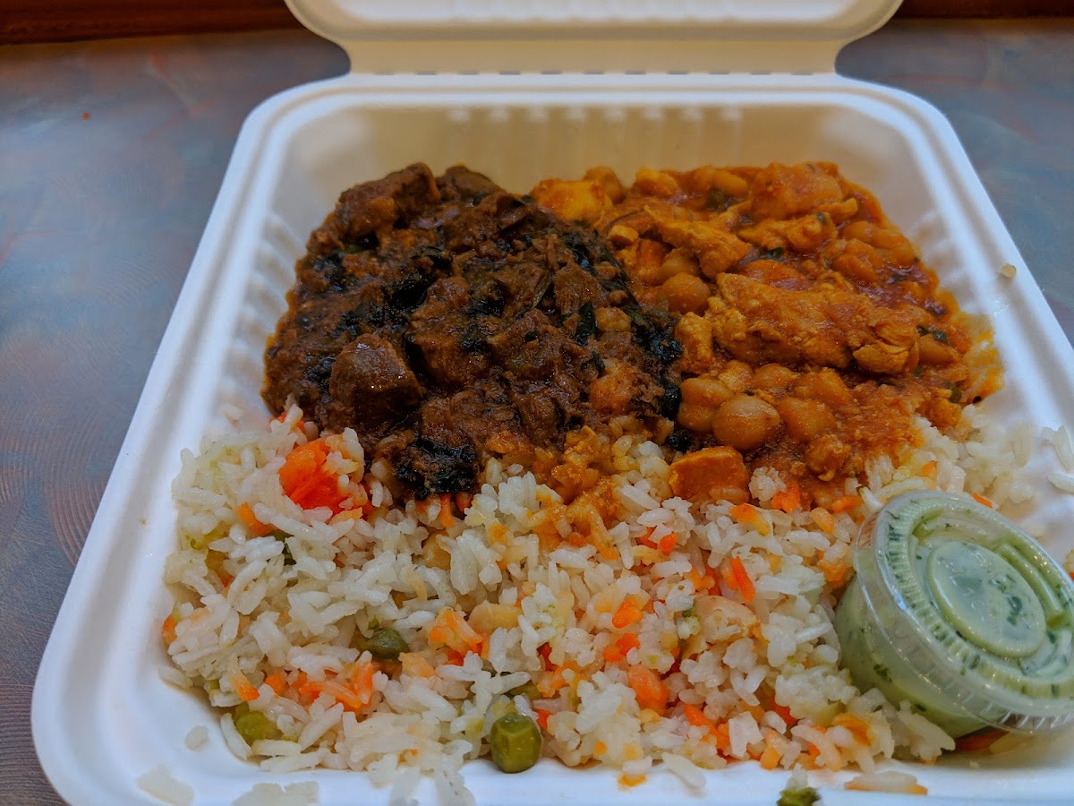 One of the standout dishes at Cafe Zum Zum is their Chicken Curry. This flavorful dish is packed with tender chicken and a rich, spiced gravy that will leave your taste buds dancing. Another fan favorite is the Oxtail, which is slow-cooked to perfection, offering a tender, melt-in-your-mouth experience. For those who prefer vegetarian options, the 1 2 Mixed Vegetable Curry and the 1 2 Spinach Potato Curry are excellent choices, filled with wholesome ingredients and a balance of spices that bring out the best in every bite. If you're in the mood for something a bit more exotic, the Split Lamb and Spinach Potato Curry provides a hearty and satisfying meal, while the Split Garbanzo Curry offers a unique twist on traditional curry flavors, with chickpeas cooked to tender perfection.